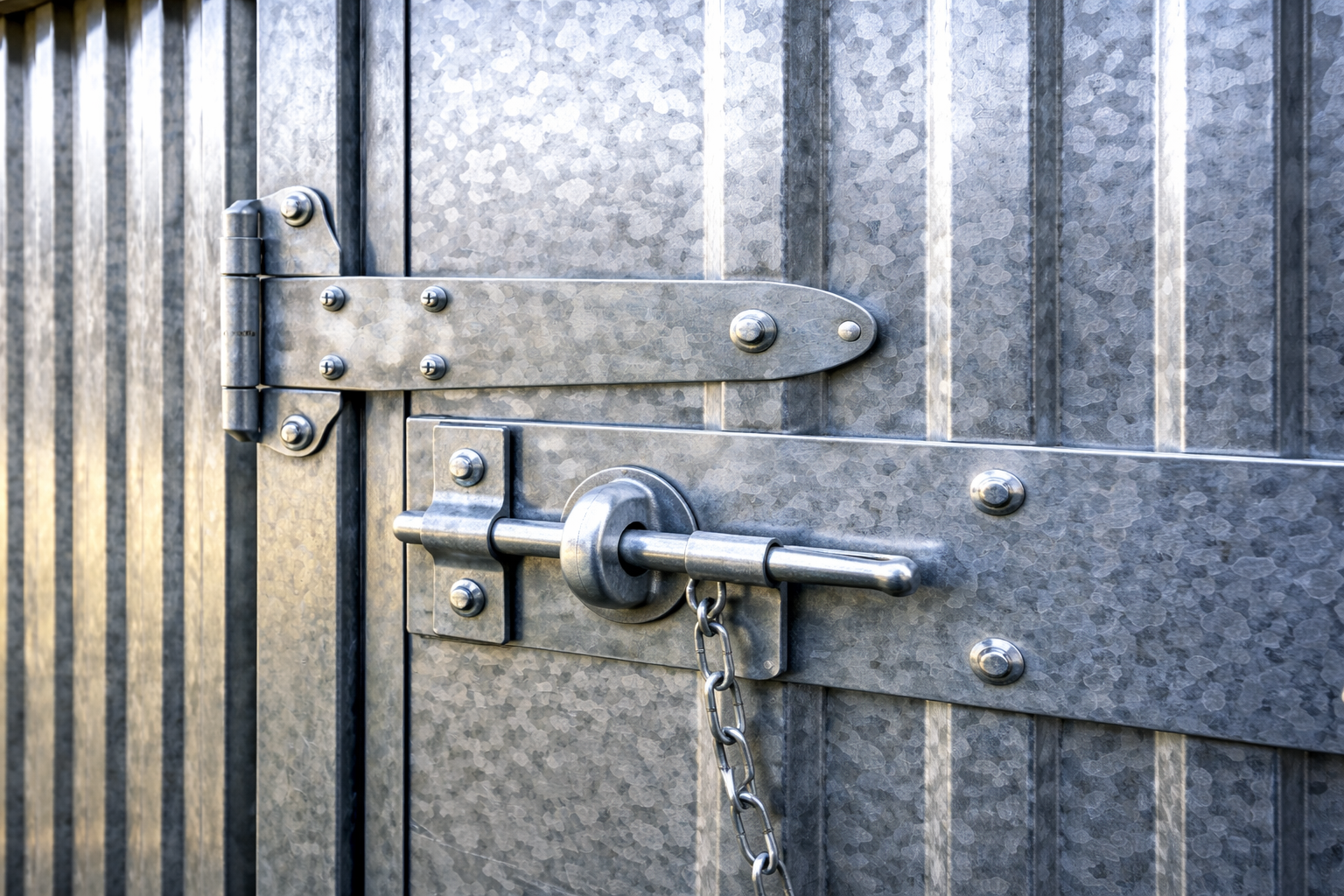 Tore und Türen aus feuerverzinkten Stahlprofilen für zusätzliche Eingänge, Futterlager oder Nebenräume an der Weidehütte.